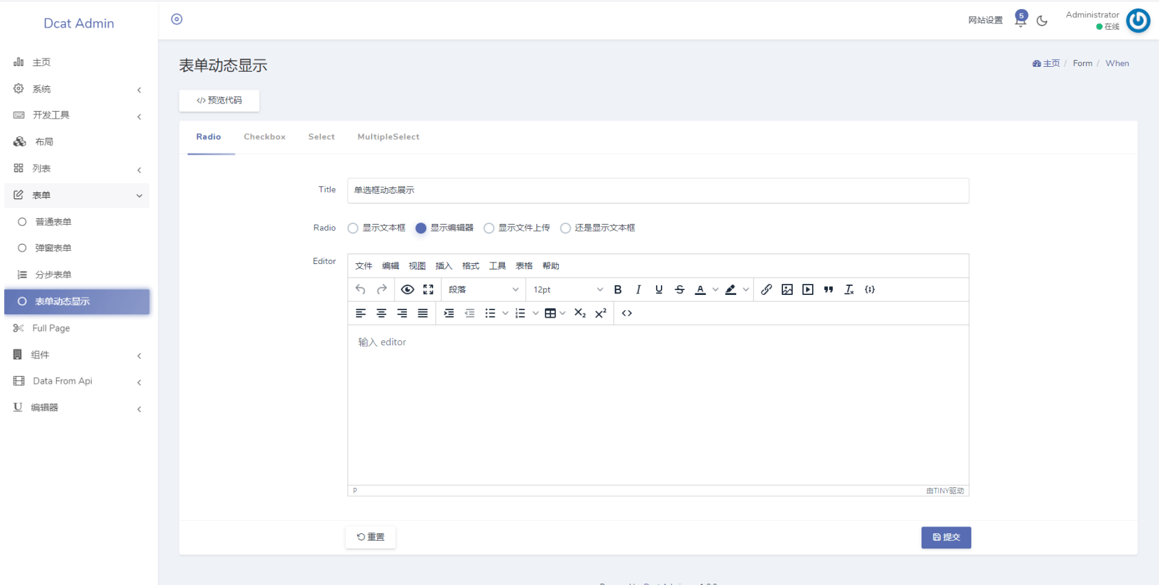 - 数据表单构建工具,内置丰富的表单类型,支持表单异步提交