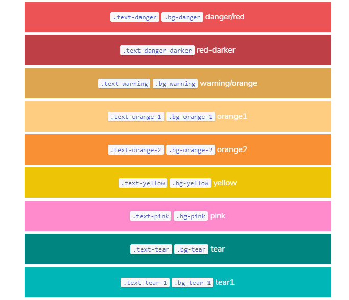 以下是Dcat Admin中常用颜色样式表,其中以.bg-* 开头的样式是背景色,以.text- 开头的样式是文本颜色