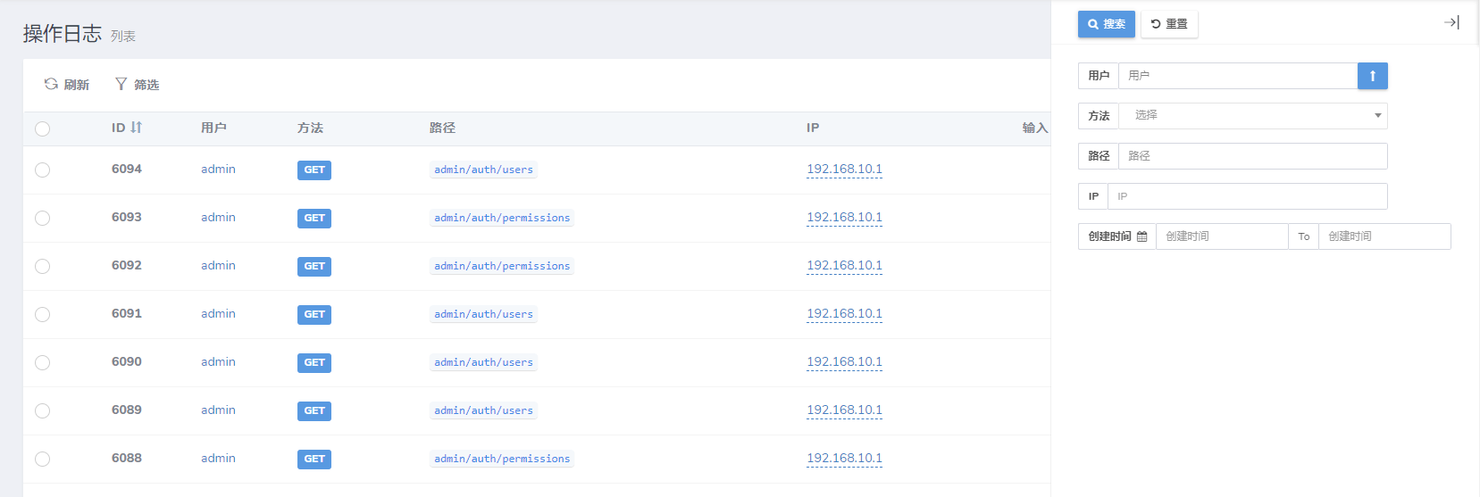 $filter->equal('column')->ignore();关联关系字段查询