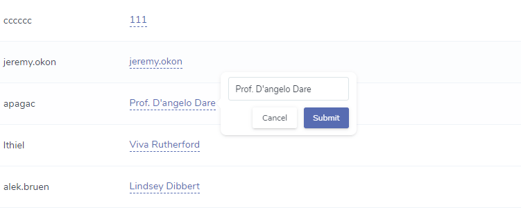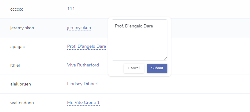 $grid->column('nickname')->editable(true);效果