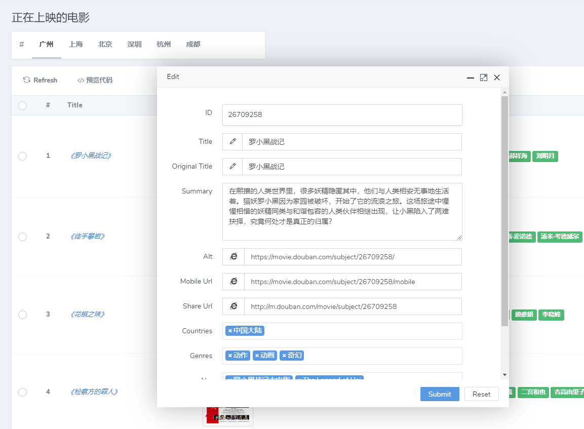create和edit页面获取构建好的表单HTML字符,然后使用弹窗插件把这部分HTML字符渲染出来。
