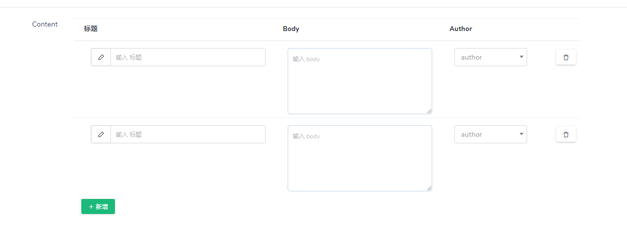 });这个组件类似于hasMany组件,不过是用来处理单个字段的情况,适用于简单的二维数据。