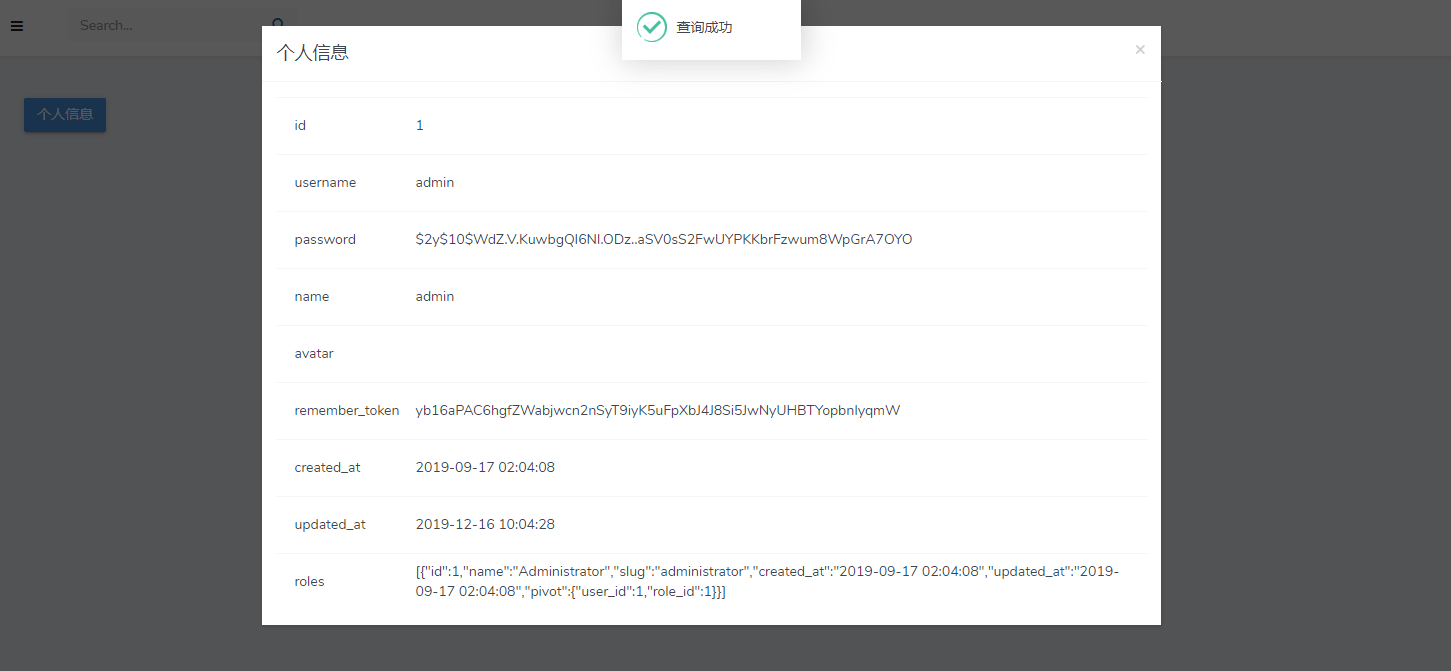 >这样一个 Action 类就创建完成了,刚刚创建的类路径是 app/Admin/Actions/ShowCurrentAdminUser.php
